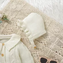 This romper set is best used during autumn, spring, and winter, when babies need gentle warmth without heavy layers. The long sleeves and knitted texture help keep your baby snug whether you’re heading out for a stroll, visiting family, or enjoying quiet time at home. The matching hat completes the look while adding extra coziness for delicate little heads.