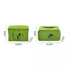This creative tissue box holder is made from high-quality ceramic, ensuring durability and timeless beauty. Its integrated clock design not only adds a functional element but also makes it a delightful conversation starter. Measuring just the right size for standard removable tissues, it sits neatly on any surface without taking up too much space. With its smooth seat-type laying method, replacing tissues is quick and effortless.