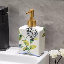 Bring charm and convenience to your home or travels with this beautifully crafted ceramic dispenser. Designed with hand-painted floral details and a shimmering golden pump, this soap and lotion bottle blends artistry with practicality. Its sturdy ceramic build ensures durability, while the large capacity means fewer refills and more ease in your daily routine.