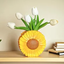 Bring the warmth of sunshine into your home with the Creative Resin Sunflower Vase — a delightful piece that blends artistry and functionality. Designed with a radiant yellow finish and a lifelike sunflower-inspired texture, this modern resin vase instantly adds a cheerful, cozy feel to any room. Whether placed on a living room table, office desk, or windowsill, it serves as a perfect accent piece that uplifts your décor.