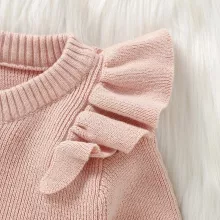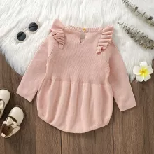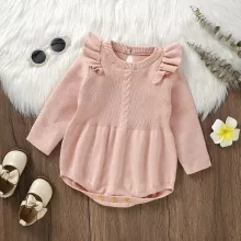Cute Autumn Cotton Knit Baby Girl Ruffle Long-Sleeve Bodysuit 0–18M