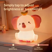 This night light is easy to use and soothing to the senses. A simple touch lets you turn the light on or adjust the brightness to your liking. The soft LED light is never harsh, making it ideal for nighttime use without disturbing sleep. Whether you want a faint glow for bedtime or a brighter light for reading or feeding, this lamp adapts effortlessly to your needs.
