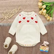 Wrap your baby in softness and style with this charming knit newborn romper. Designed for boys and girls alike, this long-sleeve bodysuit is a cozy essential for cooler days. The gentle knit texture feels incredibly soft on delicate skin, while the sweet heart pattern adds a touch of warmth and love to every moment. Perfect for everyday wear, photo sessions, or special family outings, this romper brings together comfort, cuteness, and practical design.