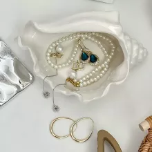 Add a touch of coastal charm to your living space with our exquisite Ceramic Tray designed in the shape of a conch and shell! This beautifully crafted decorative piece serves as both a functional storage container and a stunning accent for your home. Perfect for displaying jewelry, holding fruits, or organizing small items on your desktop, this clam shell tray combines beauty with practicality.