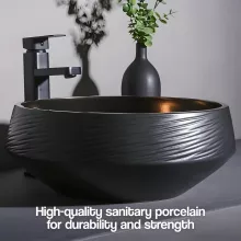 From the moment I laid eyes on this sink, I knew it was the right choice for our bathroom makeover. Its luxurious design and sleek black and bronze highlights have given the space an upscale feel. The material quality is evident, with the high-quality sanitary porcelain offering both aesthetics and durability. The round bowl shape enhances the sink’s usability, making it easy to clean and maintain. The size is just right, fitting perfectly in our bathroom without taking up too much space.