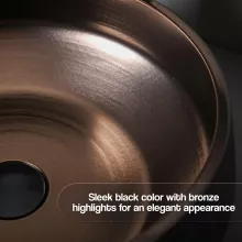 This sink is a standout in our home with its beautiful design and exceptional functionality. Its sleek black color with bronze highlights brings a touch of luxury to our bathroom. I was particularly impressed with the easy installation process, which was a breeze, even for someone like me who isn't very handy. The sink's material is top-notch, providing strength and durability that withstands daily use. Additionally, the efficient drainage system ensures that the sink remains clean and hygienic. Overall, this sink has not only met but exceeded my expectations, providing both style and substance.