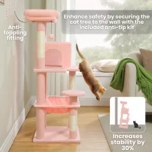 Our product stands out for its thoughtful design and superior quality. Featuring four layers of fun, it includes a cozy hammock, a private condo, a lofty tower, and multiple scratching posts. Wrapped in natural sisal and premium plush, it ensures the safety and well-being of your cats, promoting healthy nail maintenance and offering a variety of sleeping options.