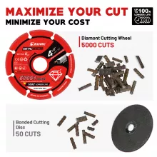 - Unmatched Durability: Each wheel is built to last longer, cutting through tough materials without wearing down quickly. You get up to 5,000 cuts from a single wheel—equating to the value of over 100 regular cut-off wheels.
