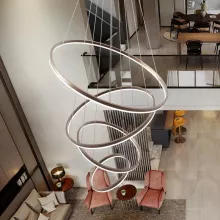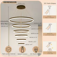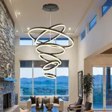 I recently installed this breathtaking lighting feature in my open-concept living room, and it has utterly transformed the space. The unique six-ring design creates a focal point that is both artistic and functional. The ability to adjust the brightness is fantastic, allowing me to set the mood for any occasion, from a bright, energizing morning to a cozy, intimate evening. The LED lights emit a warm, inviting glow that enhances the modern aesthetic of my home without overpowering it. The installation was surprisingly straightforward, and the energy efficiency of the LED technology is a major plus. It's not just a light fixture; it's become a centerpiece that elevates the entire room.