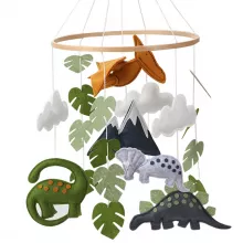 Bring calm, comfort, and a little prehistoric magic into your baby’s space with this beautifully handcrafted dinosaur baby mobile. Designed in soft, neutral tones, this Jurassic-inspired nursery hanging decor adds warmth and charm to any crib or nursery theme. The gentle movement of the felt dinosaurs naturally captures your baby’s attention, helping to soothe and relax them during quiet moments.