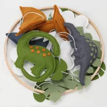 - Soft felt dinosaur design in neutral colors