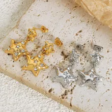 Crafted from durable stainless steel, these fashion earrings combine strength with elegance. The layered star design adds depth and movement, while the full rhinestone finish delivers a high-shine, premium look. Despite their dramatic appearance, they are comfortable enough to wear for hours. The drop style elongates the neckline, making them flattering for many face shapes and hairstyles.