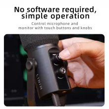 Stay in command with easy, intuitive controls. Adjust your gain with a smooth-turn knob, mute instantly with a light touch, and monitor your sound in real time using the built-in headphone jack. The monitoring knob lets you fine-tune audio levels, helping you stay confident and consistent through every session. Whether used for live streaming or recording spoken or sung vocals, this mic keeps your workflow fast and frustration-free.