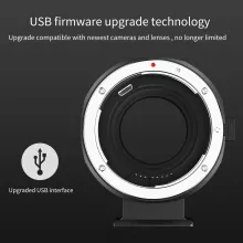 Equipped with a convertible bracket, this adapter can be easily mounted on a tripod head for stable shooting. The bottom includes a 1/4-inch screw hole, allowing direct attachment to quick release plates. Additionally, a USB upgrade port ensures your adapter stays up-to-date with continuous software improvements, fixing bugs and supporting more lens and camera combinations over time.