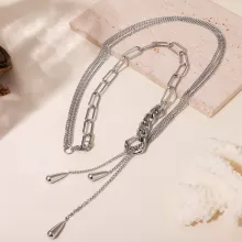 What sets this necklace apart is the combination of quality materials and striking design. The 316L stainless steel base makes it durable, while the 18k gold plating adds a touch of luxury. The multi-chain spliced design with a tassel detail creates movement and dimension, giving you a statement piece that feels both modern and timeless.