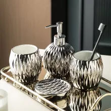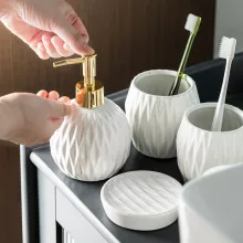 This ceramic bathroom set stands out because of its clean, minimalist design and practical everyday functionality. It’s best used for organizing bathroom essentials while adding a stylish touch to your sink area. The ceramic body not only feels luxurious but also holds up well over time. If you’re looking for a simple way to make your bathroom feel more coordinated and inviting, this set is the perfect upgrade.