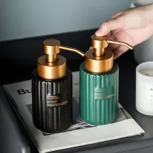 Upgrade your bathroom decor with this Elegant Ceramic Foaming Soap & Lotion Dispenser. Designed for both style and practicality, this stunning gold-striped dispenser adds a touch of modern sophistication to your sink or shower space. Its sleek ceramic body and lustrous metallic detailing make it the perfect accent piece for homes, hotels, or spas looking to blend elegance with everyday utility.