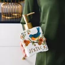 Elevate your daily routine with this Chinese Ceramic Soap and Lotion Dispenser, beautifully designed with a delicate flower-and-bird motif. This exquisite piece blends artistry and functionality, turning an ordinary bathroom essential into a stunning accent of elegance. Each bottle is crafted from premium ceramic, offering a smooth, glossy finish that feels as luxurious as it looks.