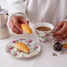Elegant Floral Ceramic Tea Cup & Dessert Plate Set