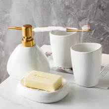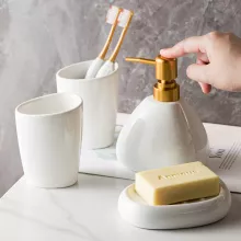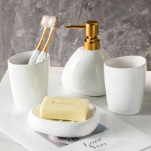 Bring a touch of sophistication to your bathroom or kitchen with this elegant ceramic lotion and soap dispenser. Designed with a smooth ceramic body and a sleek gold press head, it combines practicality with modern style. This dispenser is perfect for holding liquid soap, shampoo, lotion, or even dish soap, making it a versatile addition to your daily routine. Its refined look instantly elevates any countertop, sink, or vanity space.