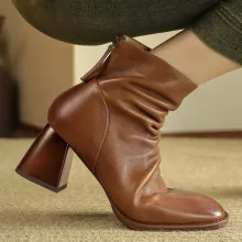 Crafted with premium cow leather on the outside and short plush lining on the inside, these boots offer all-day comfort with a luxurious feel. The 6.5cm (2.56 inch) medium-thick heel provides a confident lift without compromising stability. The square toe adds a fashion-forward twist, while the easy back zipper ensures a snug fit and effortless wear. Ideal for autumn and cooler days, they offer warmth, elegance, and durability in one slim-fitting, versatile design.