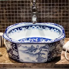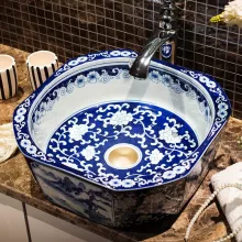 Each sink is meticulously crafted from high-quality ceramic, ensuring durability and a long-lasting shine. The intricate blue and white patterns are hand-painted, giving each piece a unique and luxurious look. The oval shape provides a contemporary touch, making it a versatile addition to both traditional and modern bathroom settings.