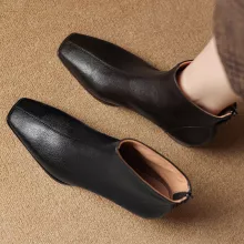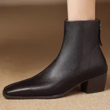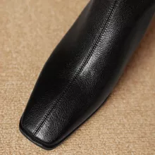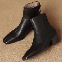 Upgrade your fall wardrobe with these elegant square toe sheepskin ankle boots, thoughtfully designed for the modern woman who values both style and comfort. Crafted from premium genuine sheepskin leather, these boots combine a sleek silhouette with a supportive mid-heel, making them the perfect companion for both casual outings and dressy occasions.