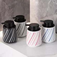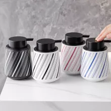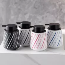 Add a touch of sophistication to your everyday routine with this striped linear ceramic lotion bottle. Crafted with care and attention to detail, this elegant dispenser blends functionality with modern design. The clean, textured ceramic body with its refined striped pattern instantly enhances the look of any sink or countertop — whether in your bathroom, kitchen, or office space.