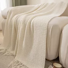 This throw blanket is thoughtfully woven to provide comfort and elegance in one. With a fine texture that resists shedding and pilling, it stays smooth and beautiful even after repeated use. Its rectangular shape drapes effortlessly over couches, beds, and chairs, while the stylish tassels give it a chic, decorative look. Although thin, it retains heat well—making it suitable for all seasons, whether you’re cuddling up in an air-conditioned room or adding a warm layer during winter.