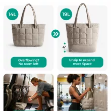 What makes this tote special is its ability to do it all. It’s stylish enough to elevate your look and practical enough to handle real life. If you’re looking for a bag that works as hard as you do and looks great doing it, this expandable puffer tote is the perfect choice.