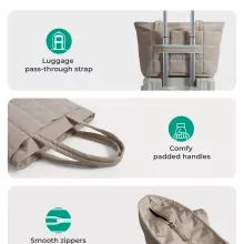 This tote features a lightweight polyester construction with a padded, quilted finish that feels cozy and looks chic. The expandable design gives you extra room when you need it, making it ideal for busy schedules and spontaneous plans. Multiple interior compartments help keep your essentials organized, so you can find what you need quickly without digging.
