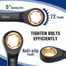 The fine 72-tooth ratcheting mechanism needs only a small swing to move fasteners, making it perfect for tight and hard-to-reach spaces. The extra-long handle design gives you added leverage, helping loosen stubborn bolts with less effort. Sizes range from approximately 5/16 inch to 3/4 inch, covering the most commonly used metric fasteners for home, garage, and automotive tasks.
