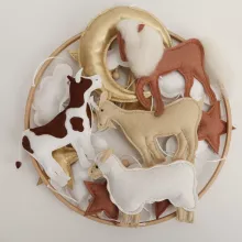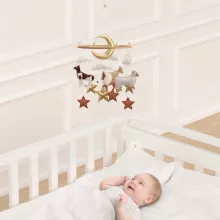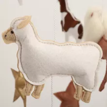 Bring a touch of gentle farmyard magic to your baby’s nursery with this delightful farm animal mobile. Featuring soft, handcrafted cows, horses, goats, and sheep, this mobile is designed to captivate your little one’s attention while adding a playful, neutral charm to any room. Perfect for above the crib or on a play area, it’s more than just décor—it’s a tool for early development and sensory exploration.
