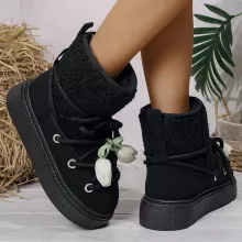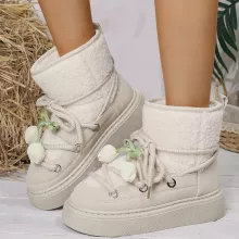 Step into winter with confidence and comfort. These floral lace-up platform snow boots are designed for women who want warmth, softness, and everyday style all in one pair. With a charming floral bow detail and a chunky platform sole, these boots bring a playful touch to cold-weather outfits while keeping your feet wrapped in cozy comfort.