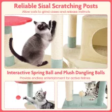 Interactive elements like dangling balls and a spring toy spark your cat’s curiosity and hunting instincts. These playful details help reduce boredom and keep both kittens and adult cats mentally and physically active. With five levels and sturdy double bases, this cat tree supports confident climbing and safe play for multiple cats.