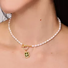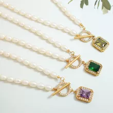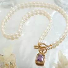 Each pearl strand is carefully arranged to highlight its natural texture and shine, giving the necklace an organic, high-end feel. The stainless steel base is coated with real gold plating using advanced PVD technology, creating a rich finish that lasts and resists fading. A sparkling cubic zircon pendant adds just the right amount of brilliance, while the front toggle clasp serves as both a secure closure and a design feature.
