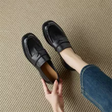 Why settle for ordinary when you can step up your style game with a pair of genuine leather chunky heel loafers? These pumps are more than just shoes—they’re a statement of confidence, elegance, and versatility. Add them to your wardrobe and enjoy a blend of fashion and function that carries you through every season in style. Don’t wait—discover the perfect pair for your everyday chic look now.