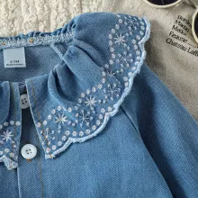 This Girls Cotton Denim Dress is the perfect blend of comfort, style, and practicality. The soft cotton fabric ensures your little one remains cozy, while the elegant ruffle design makes her look absolutely adorable. Whether for a birthday celebration or a casual outing, this dress is versatile enough to suit a variety of occasions. The denim fabric gives it a timeless appeal, while the large ruffles add a playful, modern touch.