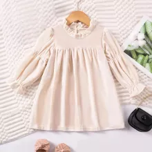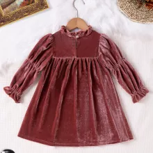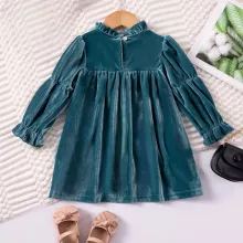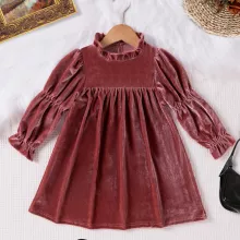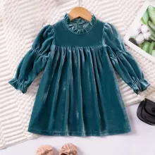 Dress your little one in charm and comfort with this adorable long sleeve velvet dress. Designed for girls ages 1-5 years, it blends playful elegance with everyday practicality. The ruffled round-neck and puff-sleeve design add a sweet and fashionable touch, while the gathered waistline creates a flattering silhouette that looks beautiful on every child.