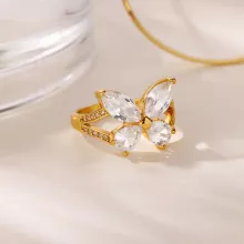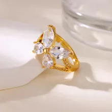 Discover a ring that blends charm, shine, and timeless femininity. This gold-plated butterfly zircon ring is crafted for women who love jewelry that feels delicate yet durable. Designed in stainless steel with sparkling zircon inlays, it offers a luxurious look without being heavy or high-maintenance. Its polished butterfly silhouette adds a whimsical touch, making it perfect for women who appreciate playful elegance and everyday sparkle.