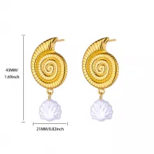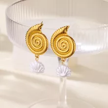 - Spiral-textured conch design paired with elegant pearl drop