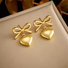 - Style: Fashionable hoop earrings featuring a heart shape with a decorative bow.
