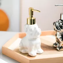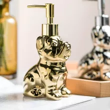 Elevate Your Bathroom Décor with the Gold-Plated Dog Ceramic Soap Dispenser
