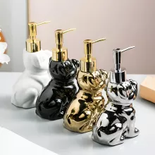 The Gold-Plated Dog Ceramic Soap Dispenser is more than just a soap dispenser; it’s an experience. Perfect for those who appreciate quality and style, it offers a blend of practicality and personality that fits seamlessly in any bathroom. With its gold accents and whimsical dog design, it’s sure to stand out and spark conversation in your home or business.