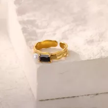 Made from durable stainless steel and enhanced with premium 18K gold plating, this fashionable ring delivers long-lasting beauty and resistance to tarnish. The sparkling zircon inlay beautifully complements the soft glow of the imitation pearl, creating a captivating contrast. Its trendy geometric design makes it a standout piece, ideal for women who appreciate jewelry with artistic flair.