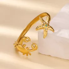 Dive into the charm of the sea with this stunning Gold Starfish & Crab Ocean Bangle for Women. Designed for ocean lovers and trendsetters alike, this cuff bracelet captures the playful spirit of marine life with its sparkling zircon accents and graceful gold-tone finish. Whether you’re dressing for a beach day, a tropical vacation, or simply want a touch of glow in your everyday look, this bangle is the perfect accessory to express your love for the ocean.