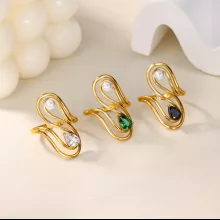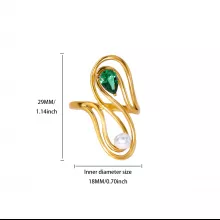 Crafted with care, the ring features durable stainless steel and 18k gold plating for long-lasting shine. Its geometric swirl silhouette measures approximately 0.8–1 in. across, making it bold yet elegant. The smooth, polished finish and minimalist shape give it a trendy touch, while the zircon and pearl combination adds a hint of luxury.