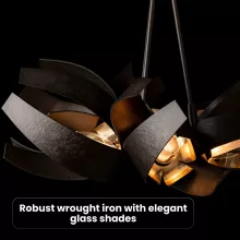 Revitalize your home with the Grand Wrought Iron Chandelier, a masterpiece of postmodern design that blends artistic flair with functional luminosity. This striking pendant light is the perfect centerpiece to enhance the ambiance of your dining room, living room, or any area deserving a touch of grandeur. With its forged wrought iron bands and clear glass shades, this chandelier captures the dynamic essence of solar flares, transforming light into a captivating display of warmth and creativity.