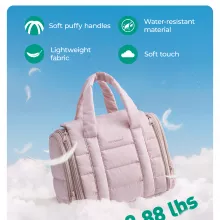 Say goodbye to cluttered counters and messy cosmetic bags. This hanging travel toiletry bag is designed to keep all your essentials perfectly organized, visible, and easy to reach—whether you’re at home or on the go. With a soft, puffy exterior and a smart interior layout, it blends comfort, style, and everyday practicality in one lightweight solution.