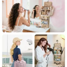 This multifunctional organizer is best used for daily routines, business trips, vacations, gym sessions, or even as a hanging bathroom organizer in small spaces. Its smart design makes it special—it adapts to your needs while keeping everything clean, protected, and easy to access.
